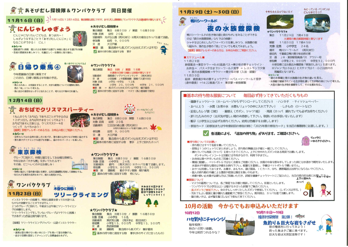当ホームページでも公開しておりますので、活動の目的、活動の詳細、持ち物、集合場所等を、合わせてご確認ください。