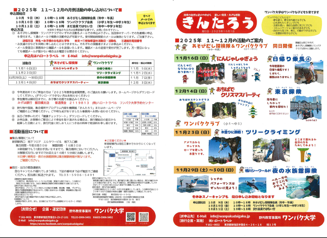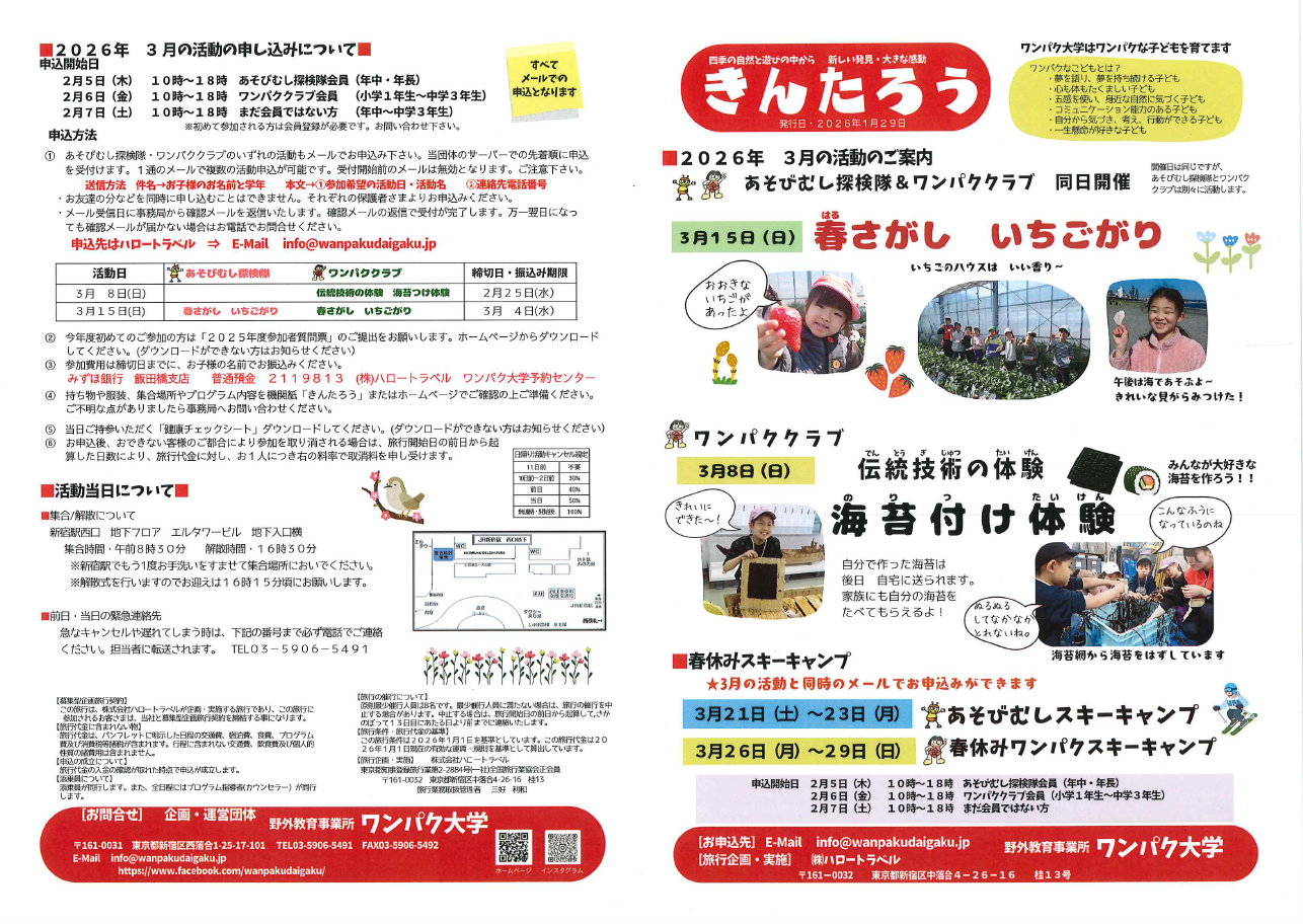 機関紙「きんたろう」には、ワンパク大学の活動の詳細を記載しております。 年間に6回の発行です。