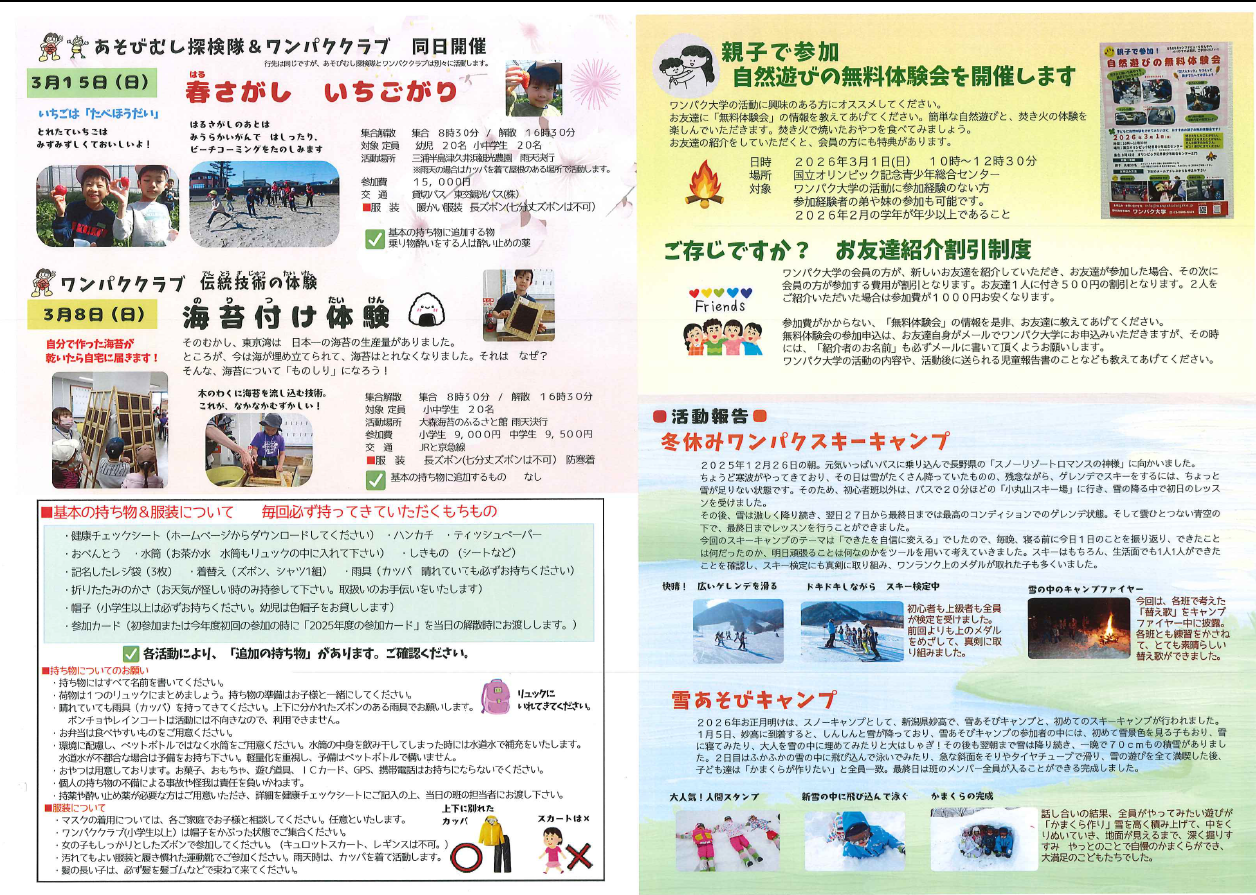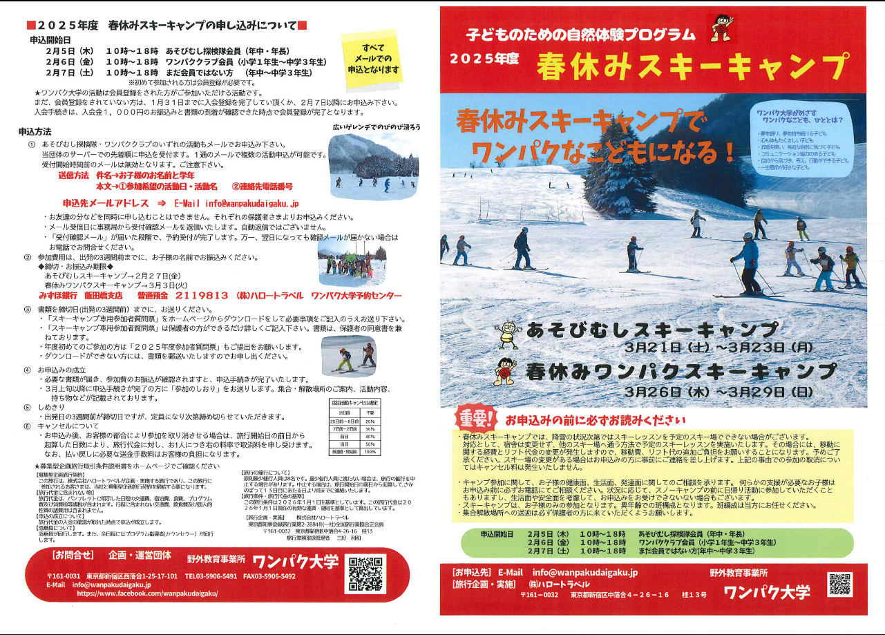2026年度 春休みスキーキャンプ